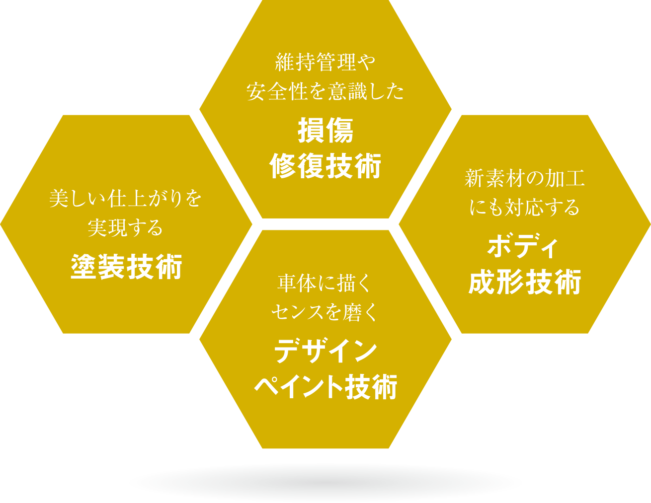 車体修繕に必要な表現技術、デザイン力、社会的知識・教養を身につける。