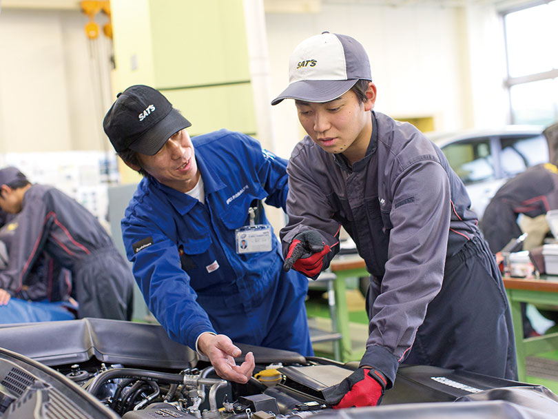 本科のカリキュラムは二級自動車整備士を取得するためだけのものではありません。今より早く、安全性と効率を高める作業をするためには、何が必要なのか。仲間と競い合いながら楽しく追及し、実習に挑み続けることで向上心にあふれるエンジニアが育っていきます。効率の良い授業展開を実践し、より多くの時間を費やすことができ、様々な車種に触れることができます。2年間で自分の適性や好きな道を見極めて、目標とするエンジニアを目指します。