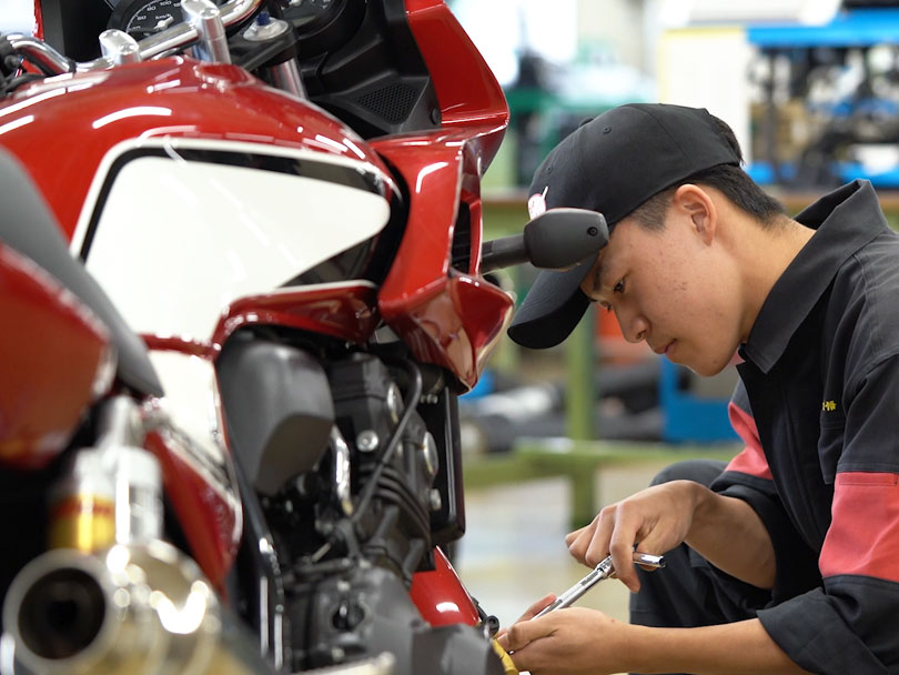 二輪車のエンジン、ブレーキ、サスペンションの構造を理解し、快適に走行するための技術を習得します。