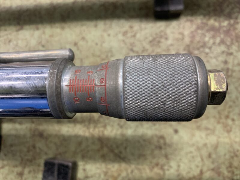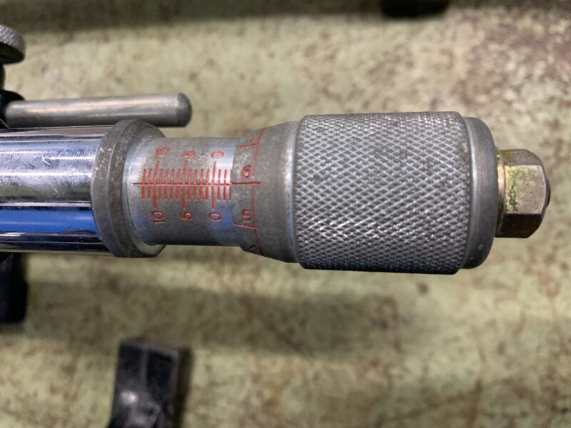 クルマのトーを測定する機器にトーインゲージというものがあります。タイヤの後側に目盛りを0に合わせた機器を当てて針がタイヤの中心幅になるよう調整し、そののち前側に移動してシンブル(ダイヤル状のもの)を回転させてタイヤの前側の中心幅になるように機器の針を当てるとトーが測定できるというものです。シンブルを回した値読めますか?