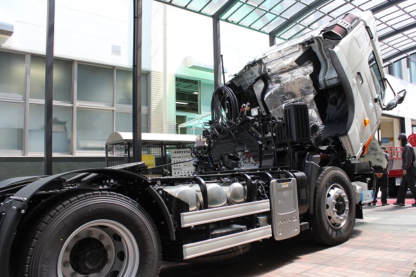 こちらは大型トラックのプロフィア。燃料の消費量を節約でき、また安全性能や長距離運転の負担を軽減する快適性能を備えたドライバーの事を考えたトラックです!