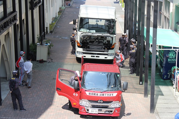そしてこちらは低燃費や低排出ガス走行性能などを追求した小型トラックのデュトロ。衝突回避を支援する「衝突被害軽減ブレーキシステム」を搭載しています!