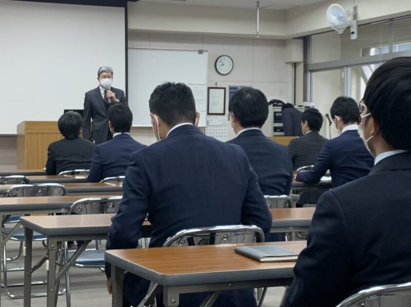 本日仕事始めということで、岡部校長から職員に対し新年の挨拶があり、2023年の業務がスタートしました。(1枚目)