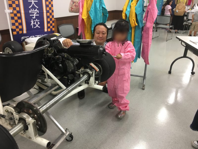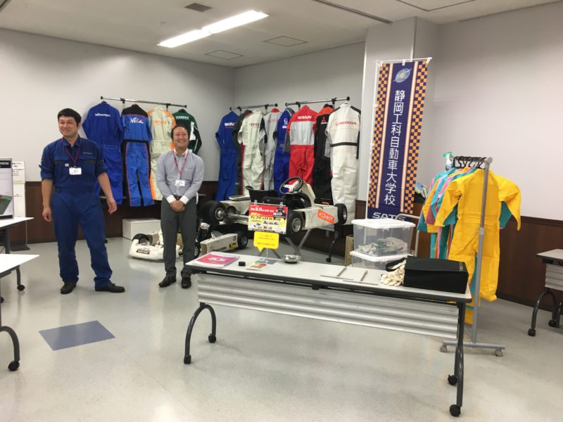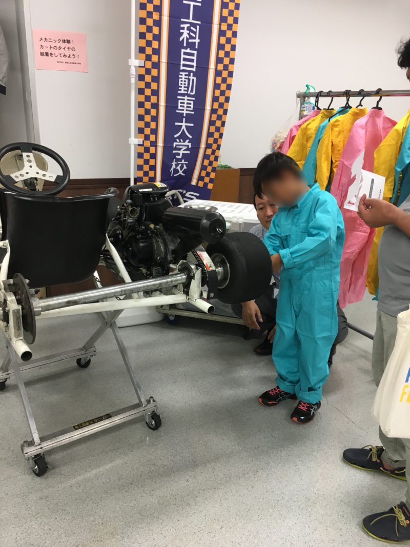 本日11日(土)は、富士川楽座で「未来発見!お仕事体験フェア」でした。各分野の専門学校4校が会してのイベントです。今回はレーシングカート2台を持ち込み、ちびっ子がつなぎを着ての「タイヤの脱着メカニック体験」と「カートに乗ってレーサー気分(写真撮影)」です。明日もありますので皆さん是非お越しください。