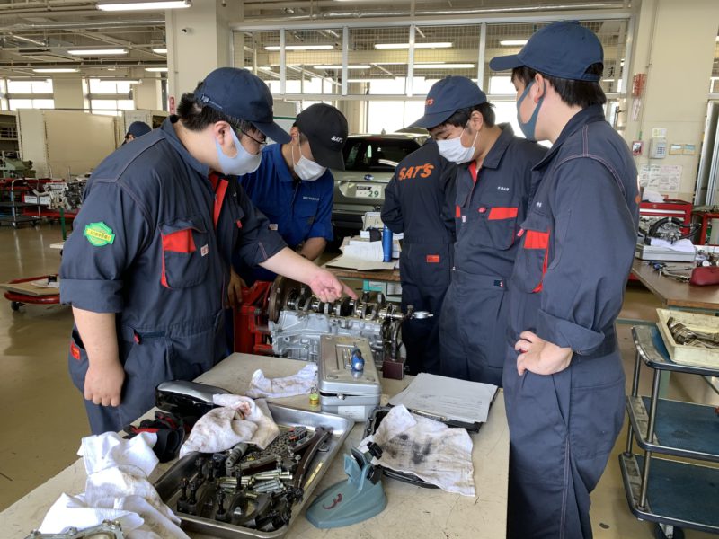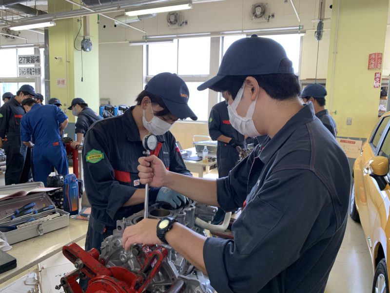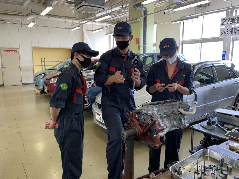 今日は自動車システム工学科の3年生の実習の様子です。1年生の時は単体エンジンの分解組立&測定は行いますが、3年生は教材車からエンジン降ろし~分解~測定~組立~車両への装着~試乗を行います。今日は分解後の測定作業をしていますが良い復習になっているようです。また今後実際に車両に載せて走らせる予定なので学生達も真剣です。(yagawa)