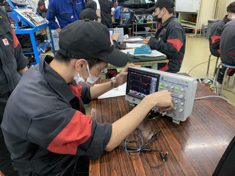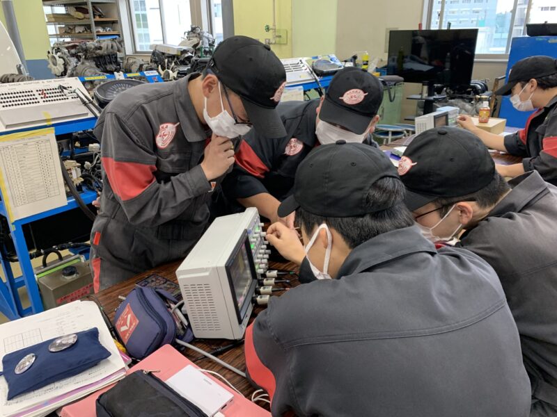 ジーゼルエンジンの授業 今日は自動車整備科2年2班の授業の様子です。佐々木先生の指導のもと、コモンレールのジーゼルエンジンの噴射信号をオシロスコープで確認していろいろと考察しています。(yagawa) 自動車整備科 更新日:2022.10.12 この記事をシェアする Twitter Facebook LINE 前の記事へ 一覧へ戻る 次の記事へ