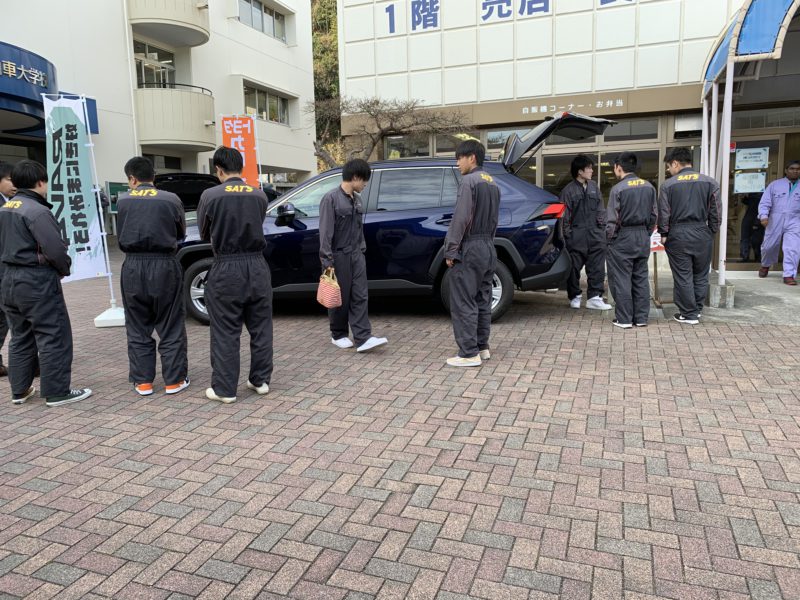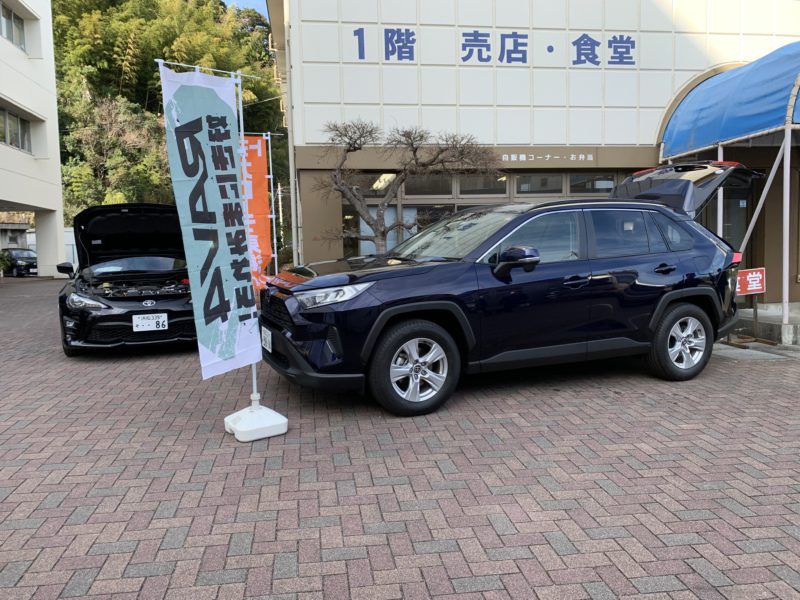 ちょっと時間が経ってしまったんですが、1月10日のお昼休みにトヨタカローラ東海様による車両展示がありましたので紹介します。当日はRAV4と86をお持ちいただきました。新発売のRAV4に学生は興味津々、86の人気も衰えません。カローラ東海様の企業奨学生、内定者も企業様に挨拶をするなど良い機会にもなりました。カローラ東海さまありがとうございました。そしてHPへのアップが遅れ申し訳ございませんでした。(yagawa)