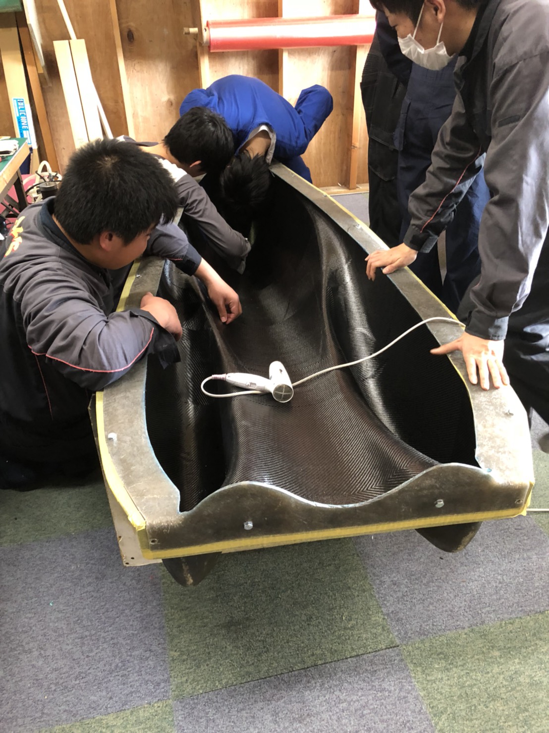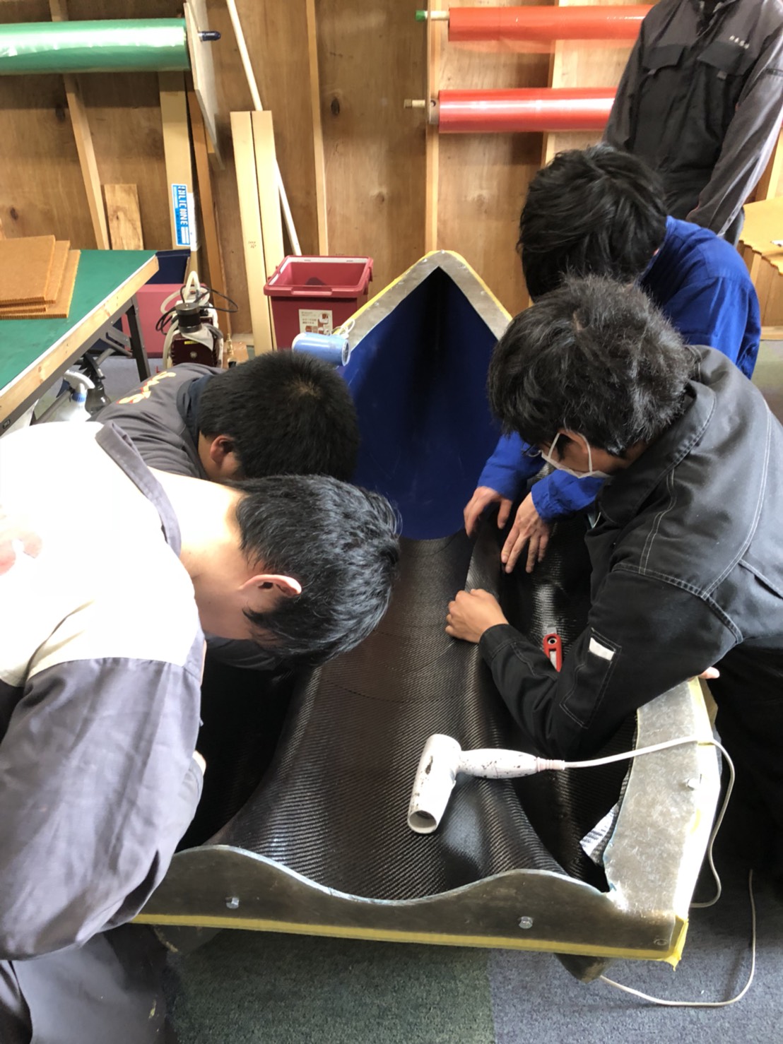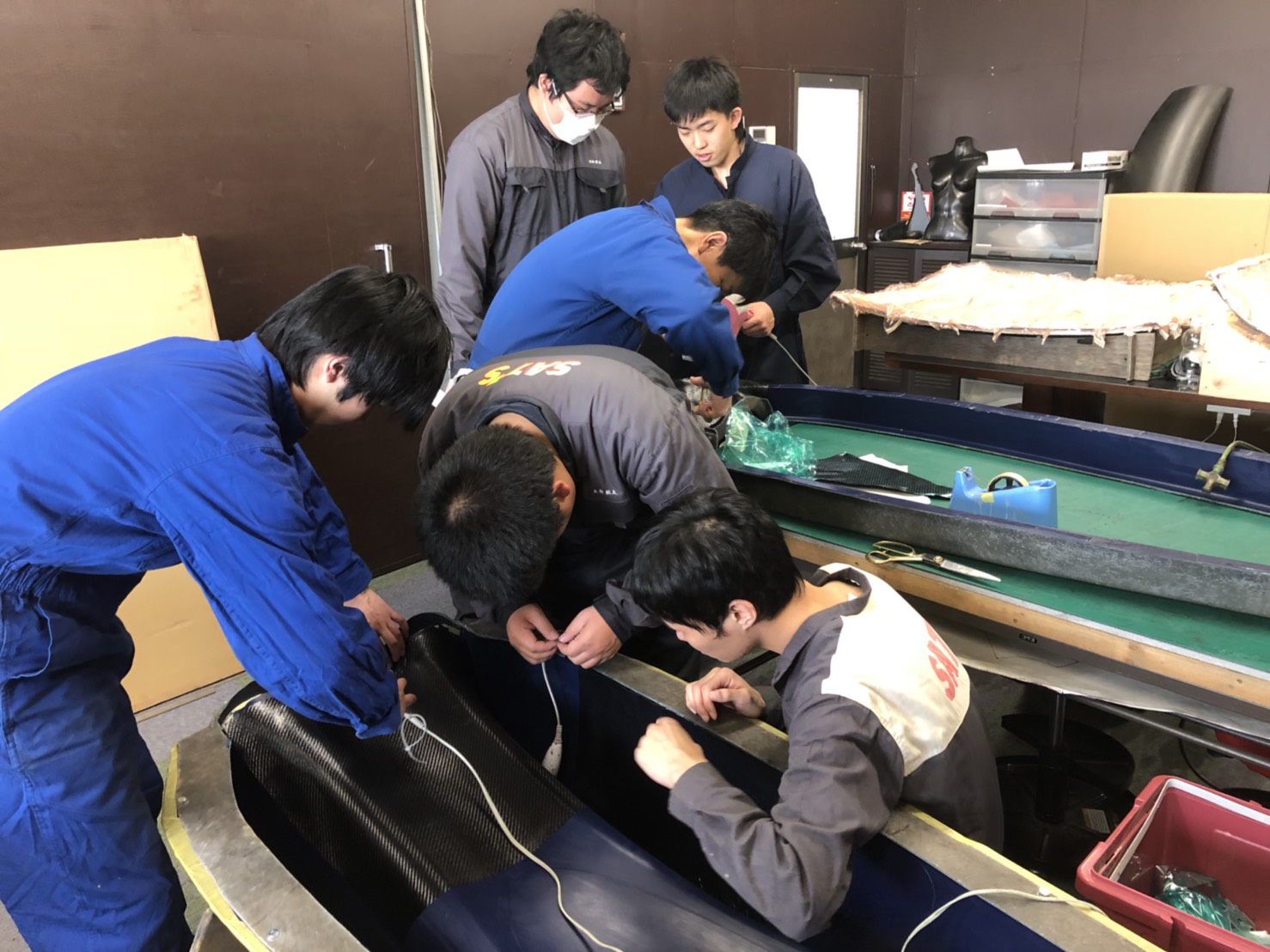 御殿場市にあるドライカーボン製品製作・加工を行うサイトハウンド様に、カーボンボディを製作に行きました。サイトハウンド様は、レース車両のカーボンパーツも手掛ける会社です。匠の技を直接見たり、技術的な指導をしていただきながらマシン製作を行いました。いいマシンができそうです!
