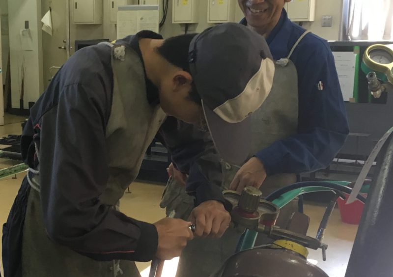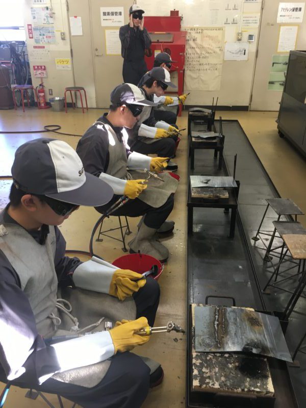 10月26日(金)と本日29日(月)の2日間、自動車整備科1年生のCクラスと自動車システム工学科1年生がガス溶接技能講習を受講しました。