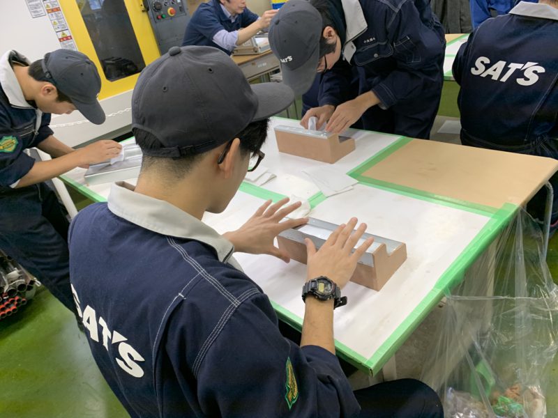 写真2:午前中の様子2(削らない平らな面はテープを張り保護します)