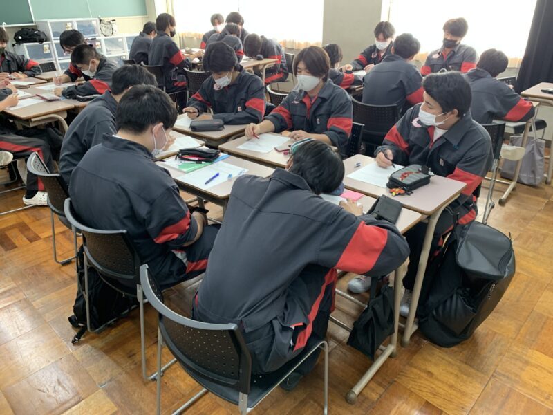 今年も自動車系1年生に3時間連続の授業の機会をもらったのでコンセンサス(合意形成)演習を授業に取り入れ実施しています。課題に対して自分の意見をまとめ、小グループでの意見にまとめ上げるというものです。本日は自動車整備科の1年生が対象です。皆積極的に参加してくれました。(yagawa)