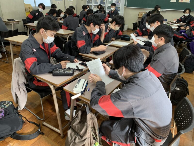 前回に引き続き自動車システム工学科の1年生に3時間連続の授業でコンセンサス(合意形成)演習を行いました。課題に対して自分の意見をまとめ、小グループでの意見にまとめ上げるというものです。皆積極的に参加してくれました。(yagawa)