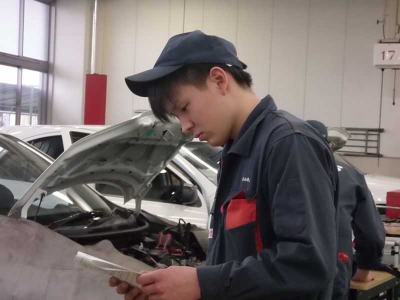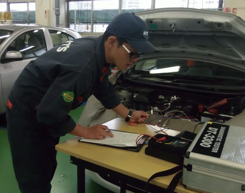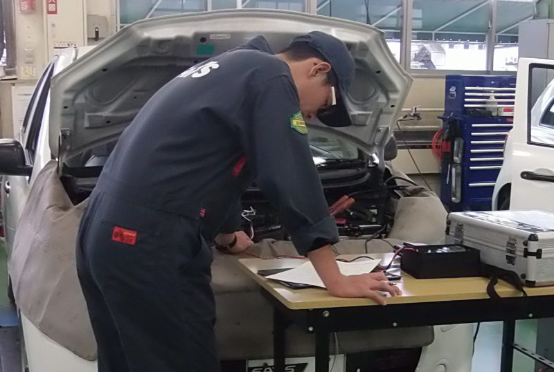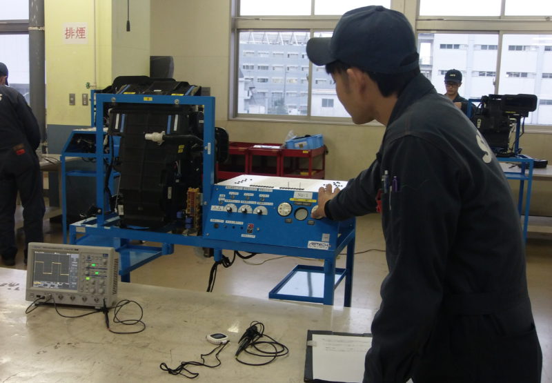昨日、自動車システム工学科の4年生が実習の確認試験に臨み、午前、午後にそれぞれ1科目ずつの試験を受けました。問題用紙に書かれている課題に従い、実習車両の故障探究やオートエアコンシュミレータでのデータ取り、電動ミラーの故障探究などを解いていきます。4年間の集大成ともいえるこの試験、皆真剣です。(yagawa)