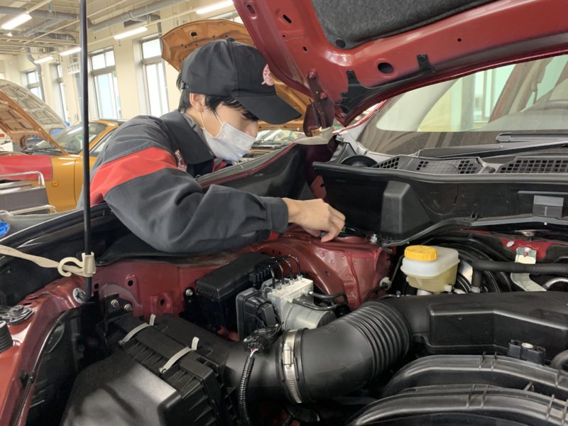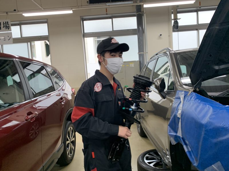 今日の午後、カリキュラムの関係で実習場で実習をしている科・学年は疎ら。そんな中楽しそうにストラットの脱着をしている数人を発見。聞くと授業は無いが近々ストラットの脱着試験があるようで志願して練習をしているのだとか。内藤先生の掛け声のもと楽しく声出しをしながら何度もトライしていました。(yagawa)
