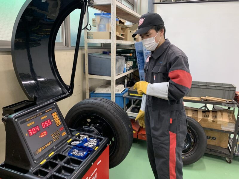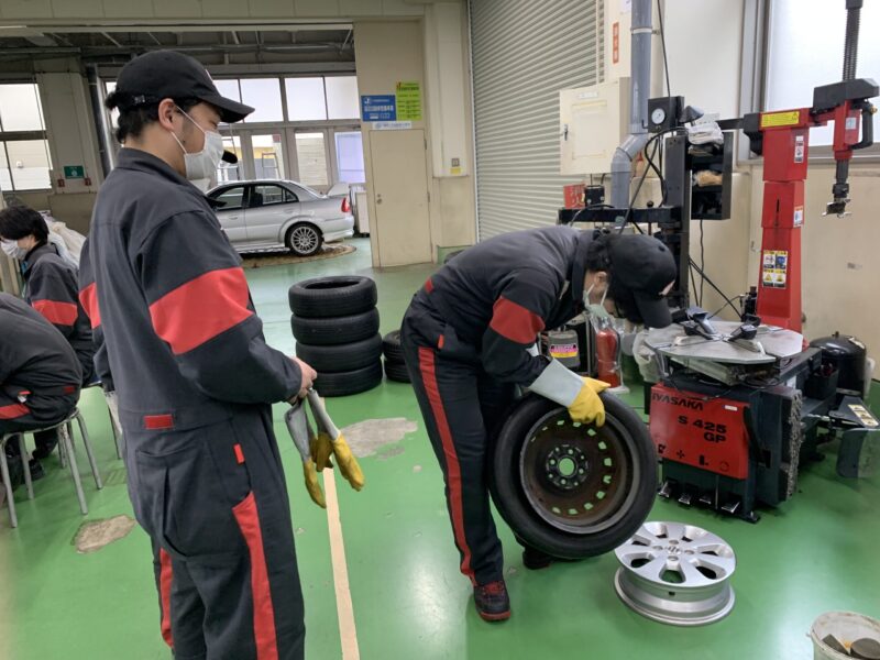 タイヤ脱着の実習