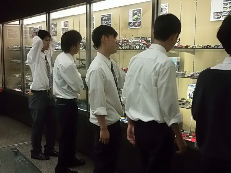 静岡北高の生徒が「高・専一貫コース」を選択すると、北高での授業終了後や土曜日に本校で授業を受けたり、本校主催のイベントに参加できることは前回ご紹介の通り。本日6月6日(水)は「高・専一貫コース」の2年生の生徒たちがタミヤ模型本社の展示スペースの見学に行きました。歴史のコーナーありスケールモデルの基になった現車のコーナーありで見ごたえ十分な見学会でした。