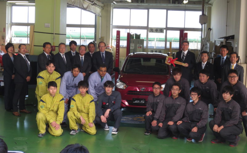 ダイハツ販売株式会社の3販社さまより教材を寄贈していただき、本日寄贈式が本校実習場で行われました。