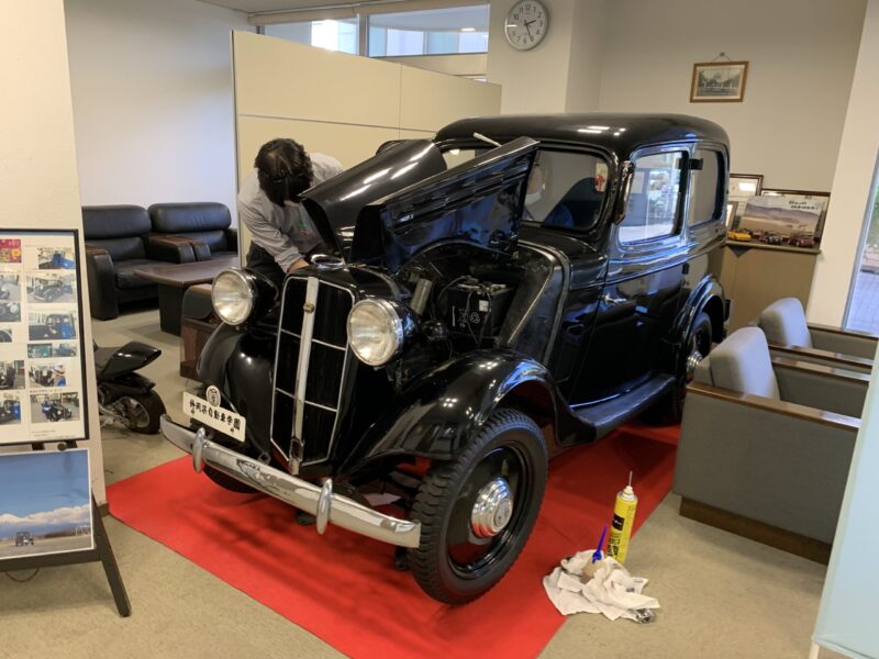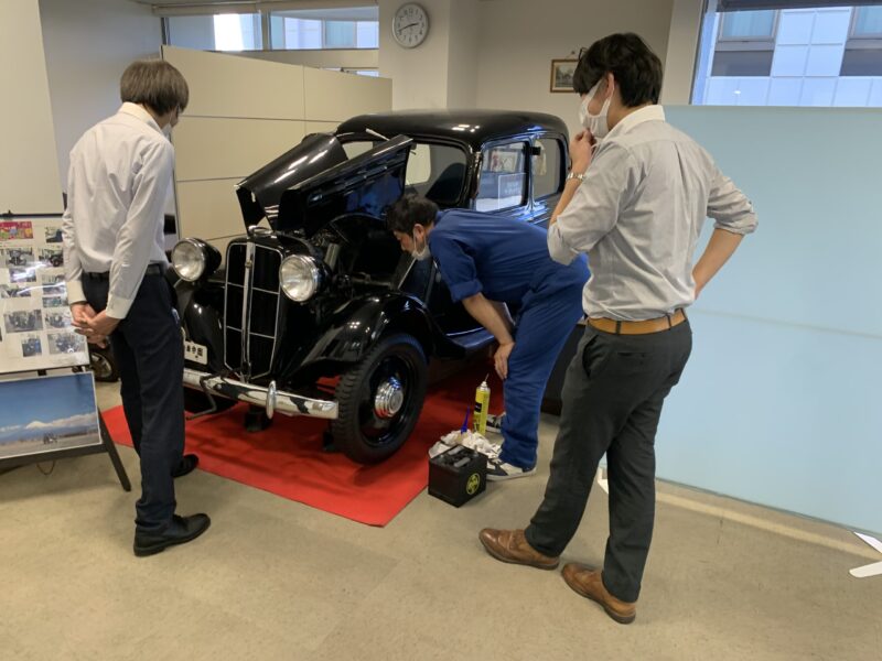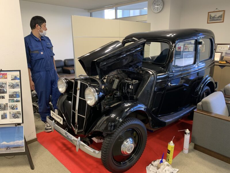 30年以上前から本校のシンボルカーとして玄関に展示しているダットサン。5年前に静岡カーフェスティバルを開催するにあたり、エンジンを目覚めさせ、ブレーキを整備、新品のタイヤに履き替え、イベント当日見事に走行する姿をお客様にお披露目することができました。その後、定期的にエンジンを掛けて現状維持をしてきましたが、1年半ほど前にフューエルポンプが破損してからは放置状態が続いていました。今回3年ぶりのカーフェスの準備を進めていく中で、またダットサンを来場する皆さんに見ていただきたい!ということになり、先日久しぶりに作業を再開。まずはシリンダ&ピストンにオイルをなじませ、燃料はキャブから直接入れて長いクランキング。皆がハラハラしながら見守る中・・・ブルルルルーン!久しぶりに火が入りました。当日は会場内ではエンジンは掛けませんが、万全の状態でお披露目できると思います。乞うご期待!(yagawa)