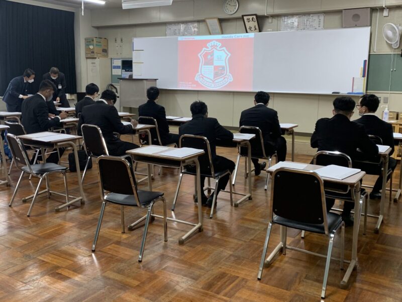 本日、明日の2日間、校内でディーラーガイダンスが開かれます。2日間を午前と午後に分け、全4回それぞれの回にディーラー様を中心とした企業様に来校いただき、ガイダンスを実施していただきました。企業様に対し校長よりご挨拶申し上げたのち、企業様には割り当てた教室に待機していただきます。学生達は各回3社を選び、ブース形式で企業様のお話を聞きます。個々真剣な面持ちでそれぞれのブースに臨んでいました。(yagawa)