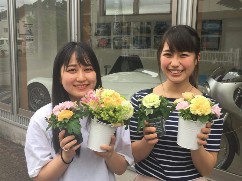 本日の自動車整備科2年生の女子の授業「ショップコーディネート」は講師の太田玲子先生の指導でフラワーアレンジメントの講習が行われました。2人の学生(1枚目)それぞれ作品を作り(2枚目)、授業終了後は校長室(3枚目)や職員室を華やかに彩ってくれました。(4枚目は担任の山本先生)(yagawa)