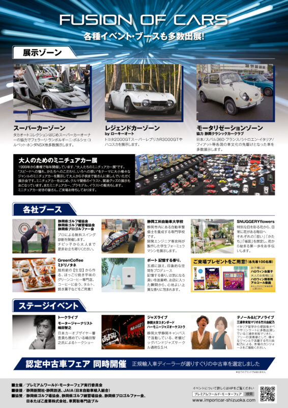 明日、明後日はツインメッセ静岡北館でプレミアムワールド・モーターフェアが開催されます。正規輸入車ディーラー・インポートより複数のブランドが多数集結するイベントです。本校も学校紹介ブースで学生フォーミュラのマシンを展示します。先ほど搬入してセッティングを終えてきました。お時間のある方、遊びに来てくださいね!あっ僕は別イベント参加でいませんがっ!(yagawa)