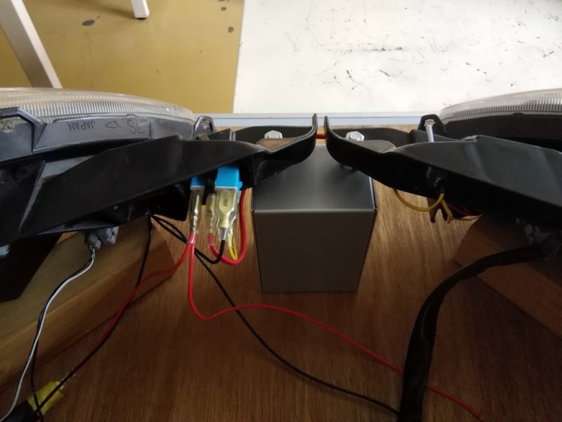 左ヘッドライトにリレーを、右ヘッドライトにスイッチをかくしてあります。