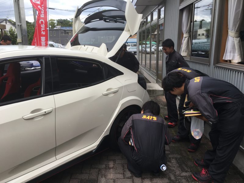 学生達は普段見ることの無い車両に触れ感激しています。タイプRは人気あります。