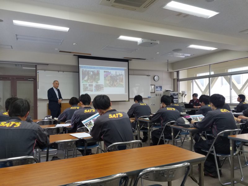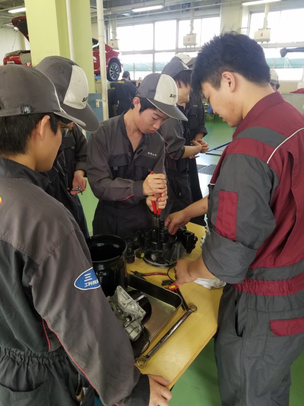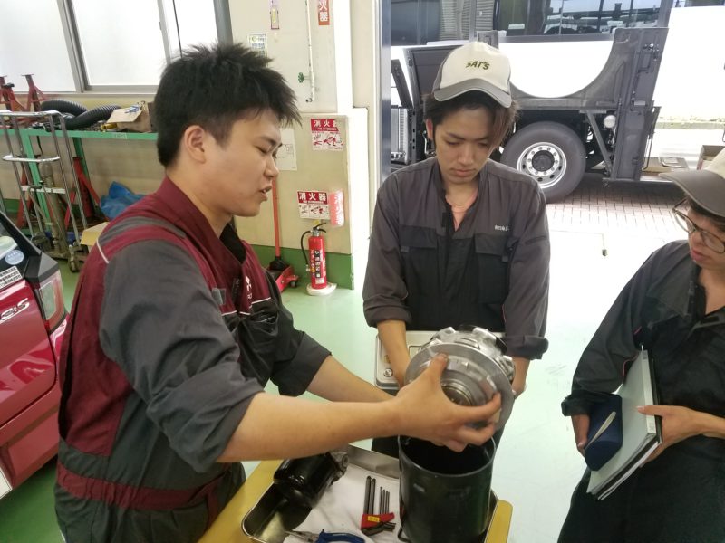 6月10日に引き続き24日、三菱ふそう様による企業実習がありました。前回はお持ちいただいた車両の写真をメインに掲載したので今回は実習の様子を紹介したいと思います。最新の大型の教材はなかなか学生に触れてもらう機会がないので、2年生の学生達も真剣に楽しく実習を受けることが出来ました。良い機会をいただきありがとうございました。(yagawa)