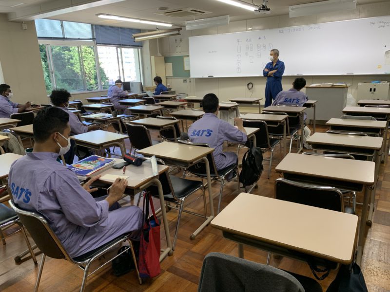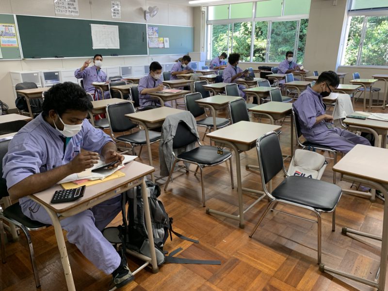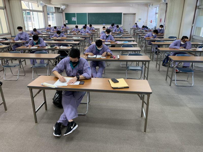 緊急事態宣言の延長後、2級・ボディエンジニアコースが分散登校をしていましたが、本日から留学生の3年生も登校です。留学生は3年間ですが10月の整備士試験を受験します。先週まではWEBでの試験対策でしたが、残り1週間は対面での対策授業で2会場に分けてコロナ対策も万全です。緊張感を持ってやってますが、ピースで余裕の学生も居ます(笑)ラストスパートでガンバレ!(yagawa)