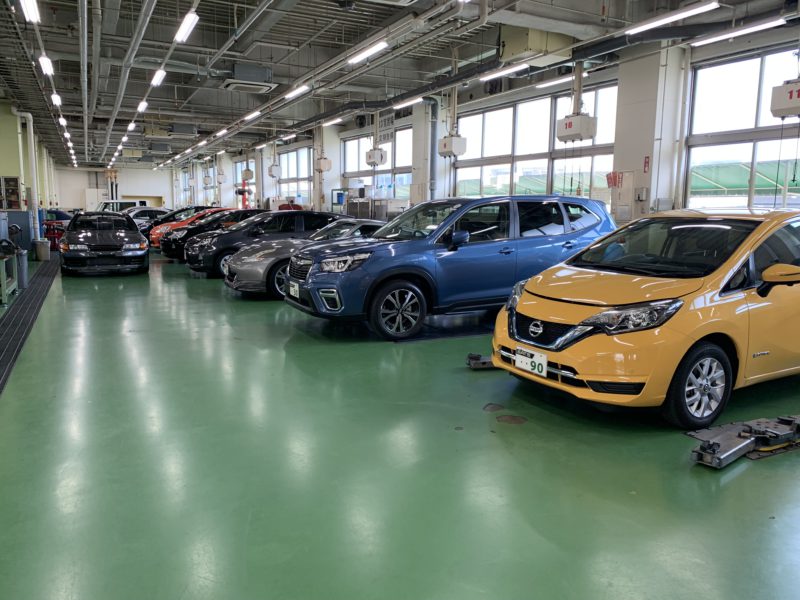 今日は2年生が2階以上で試験を行っています。試験の様子はSNSに載せるもできず1階へ。1階はシステム工学科の3年生か4年生が車検、点検を実施していることがほとんどなのですが、今日はどちらも教室での授業のようでガラーンとしています。学生が居ない実習場も広々していて施設の様子がよくわかるのでパチリ!日頃こんな環境で勉強しています。(yagawa)