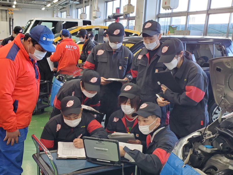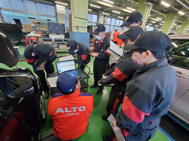 1月14日に行われたスズキ静岡様による企業実習の様子です。自動車整備科の3班が受講しました。前半は学生ホールでの概要説明。後半は実習場へ移動し、課題シートに従ってコンピュータ診断機による故障診断の方法を教授施していただきました。スズキ静岡様ありがとうございました。(yagawa)