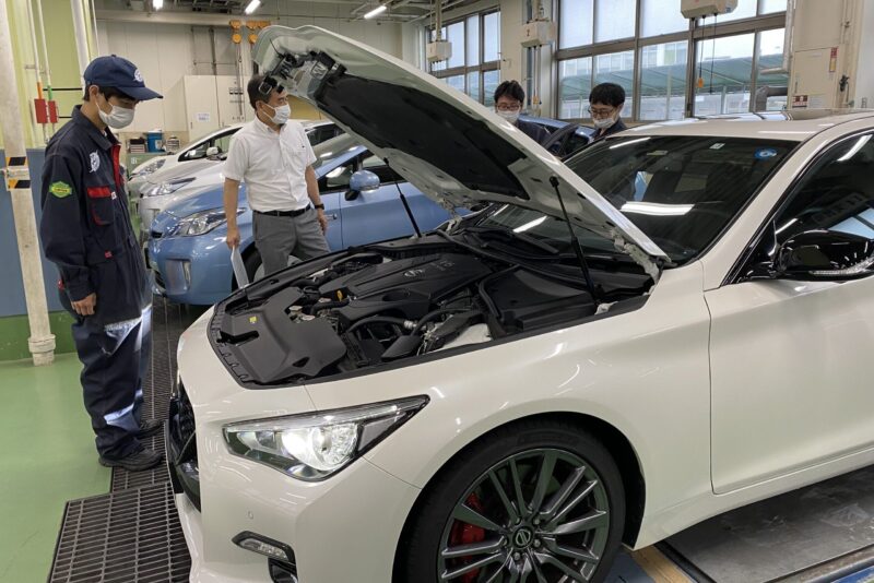 ちょっと日が経ってしまいましたが15日、日産さまに、自動車システム工学科の3年生を対象とした出張授業を実施していただきました。お越しいただいたのはメーカーの日産自動車さまと、静岡日産、浜松日産、プリンス静岡さまの3社。スカイラインの400R、アリア、サクラ、リーフをお持ちいただき、PPP体験、実写説明などをしていただきました。学生たちはスポーツカー、最新の車の話を興味深く受講していました。お越しいただいた皆様、ありがとうございました。(yagawa)