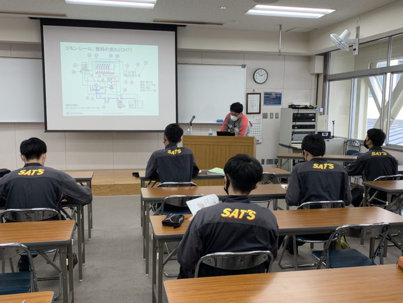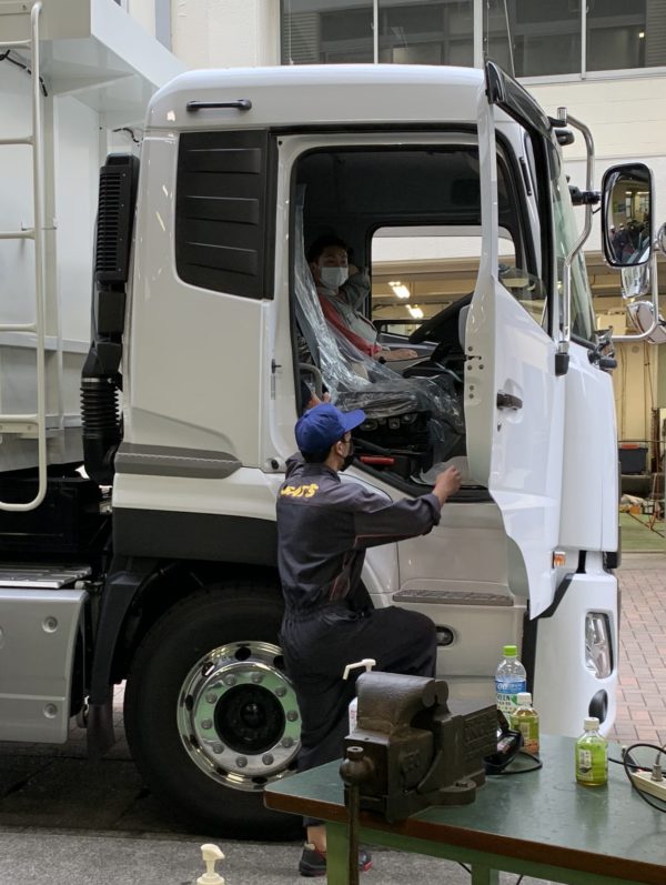 UDトラックス様の「企業様を招いての実習授業」が13日にも行われたのですが、紹介する機会が無かったのでUPします。前回同様、自動運転の定義やUDトラックス様におけるメカニックの重要性などのお話を頂いたのち、コモンレールシステムの説明や現車、単体部品確認などの授業をしていただきました。大型ダンプには学生が1人ずつ乗り込み、運転席からの眺めを楽しむ時間も頂きました。UDトラックス様ありがとうございました。(yagawa)