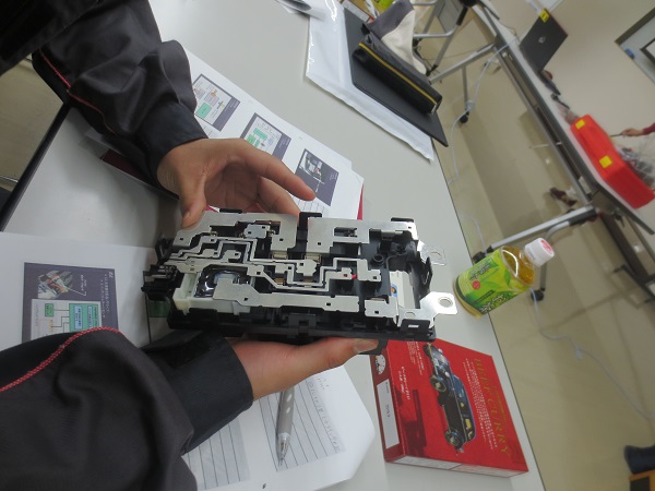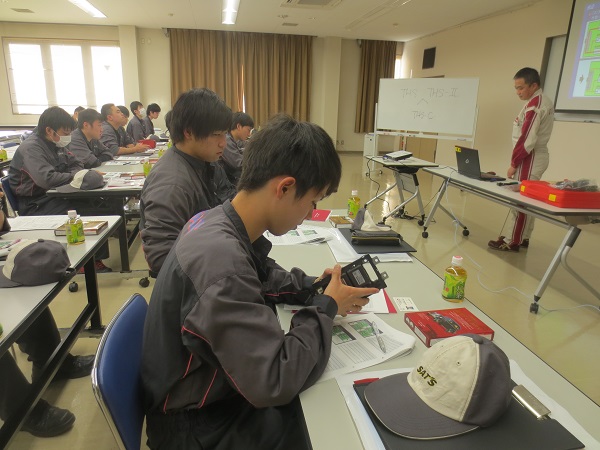 実習では、研修施設と作業ピットをお借りし、学んだばかりのハイブリッドシステムの確認やハイブリッドマスターの内容を教えていただきました。