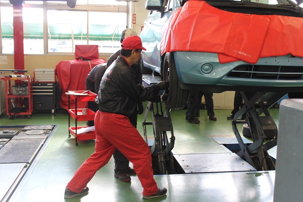 12ヵ月点検は点検する項目も多く、限られた時間の中で作業をこなさなければなりません。プロの整備士は一つひとつの動きに無駄がなく、効率よく作業をしていて流石だなと感じました。学生もこの実習を忘れず就職先でも頑張ってほしいです。