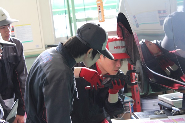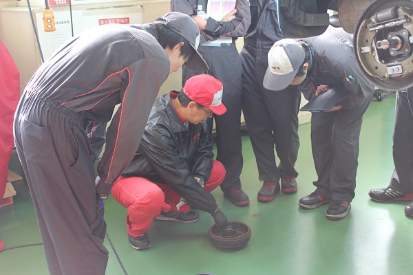 今回教えて頂いたのは「法定12ヵ月点検」です。学生は作業手順などを学びました。