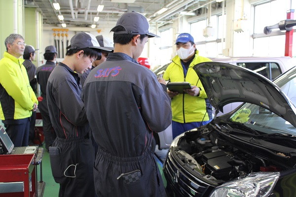前半ではハイブリッドシステムの内容や、スズキの次世代テクノロジー「マイルドハイブリッド」や「Sエネチャージ」、「デュアルジェットエンジン」の仕組み、そして診断機の取り扱い方法などを詳しく教えて頂きました。