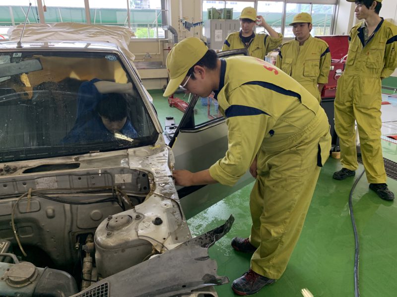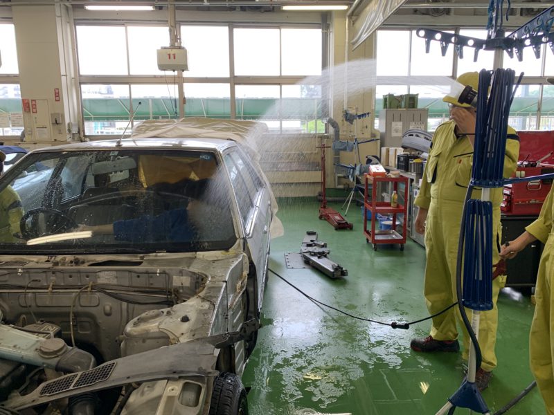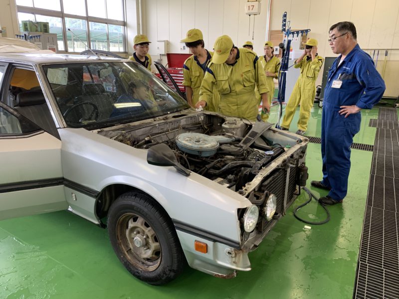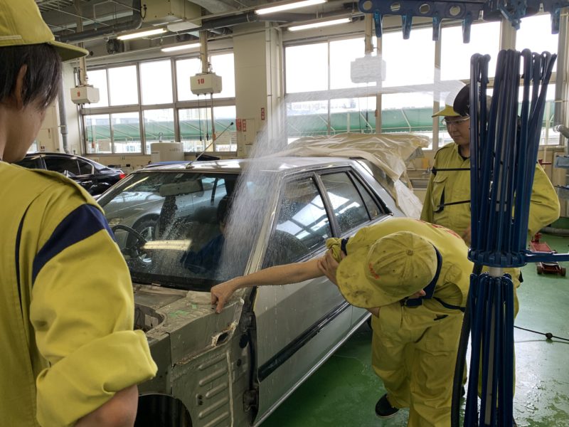 本校ではナンバーのついた車両を受注車として受け入れ、教材として車検や一般修理を行います。今回私のスカイラインのバンの雨漏りがひどいので軽い気持ちでお願いしたら、ありとあらゆるところを外しての大手術中。とりあえずの修理後、水を掛けての検査中ですが結果は・・・一筋縄ではいきません。(注:受注車として一般の方のお車はお預かりしていません)(yagawa)