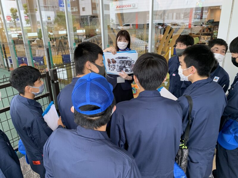 昨日、城南静岡の中学2年生19名が来校し体験授業を受けました。つなぎに着替えリフトの上げ下ろしやタイヤの脱着などの体験、近隣のディーラーさん見学を行いました。皆さん「自動車整備のお仕事」理解できましたか、興味を持っていただけましたか?お越しいただきありがとうございました。ご協力いただきましたディーラー様ありがとうございました。(yagawa)