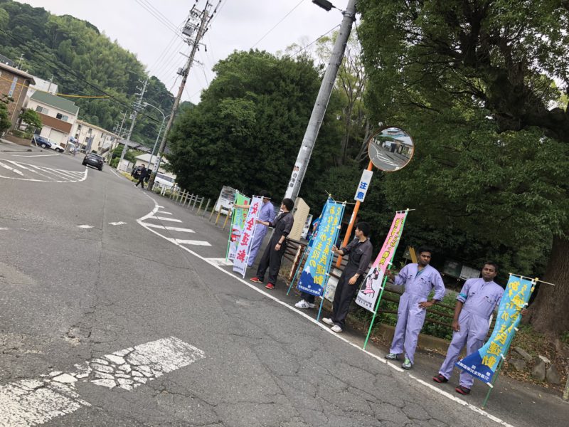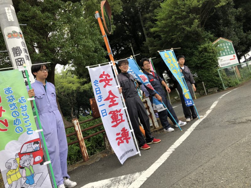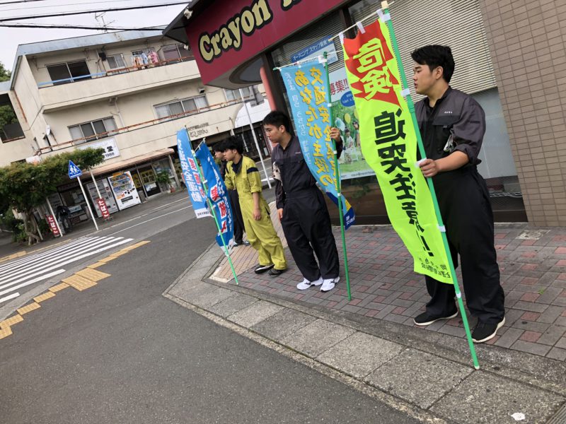 平成30年7月11日(水)から7月20日(金)までの10日間は夏の交通安全県民運動です。本校も交通安全に一役買おうと、18日と19日の2日間自治活動(生徒会みたいなものです)の本部役員と各クラスのクラス委員が集まり、本校がある宮前地区の周りの危険な箇所で交通立哨を行いました。