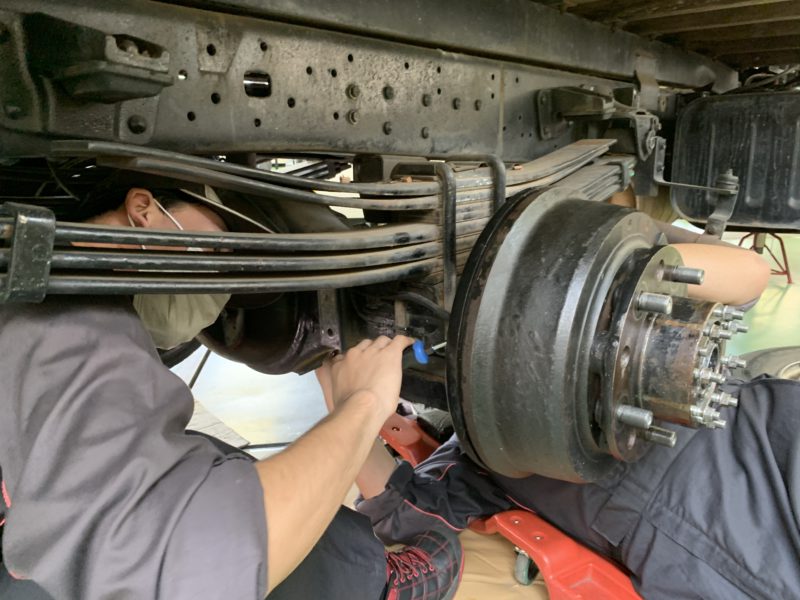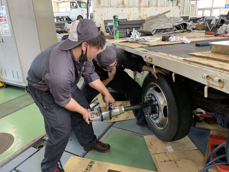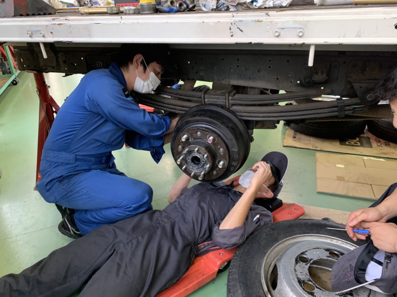 今日は自動車整備科2年生が池原先生のもと大型自動車の実習を行っています。今日のメニューはタイヤの外し方、ブレーキ調整などの様です。職員も対面の実習は楽しそうです。学生のみんなも久しぶりに友達と再会し楽しそうです。がっ油断しないで三密しないように意識しながら学校生活送ろうね。マスクちゃんとしてよ!(yagawa)