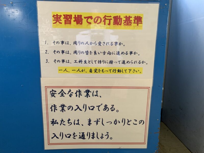 「実習場での行動基準」:行動する上での個々やるべき事柄を改めて見直します。