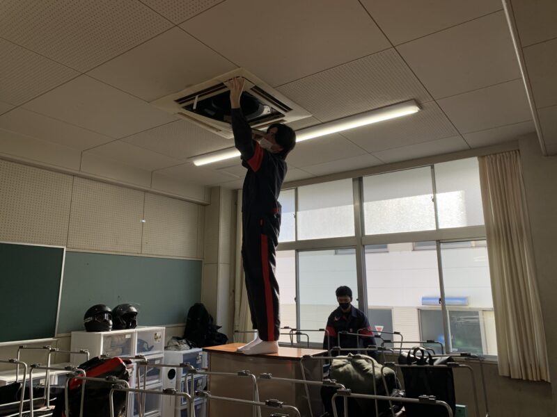 2022年も本日無事に終業となりました。HRで冬休みの注意事項などを受け(宿題も出たのかな?)大掃除をして終了です。冬休み中の交通事故、新型コロナウイルスに注意して良い年末年始を迎えてくださいね。※写真は大掃除の様子です。(yagawa)