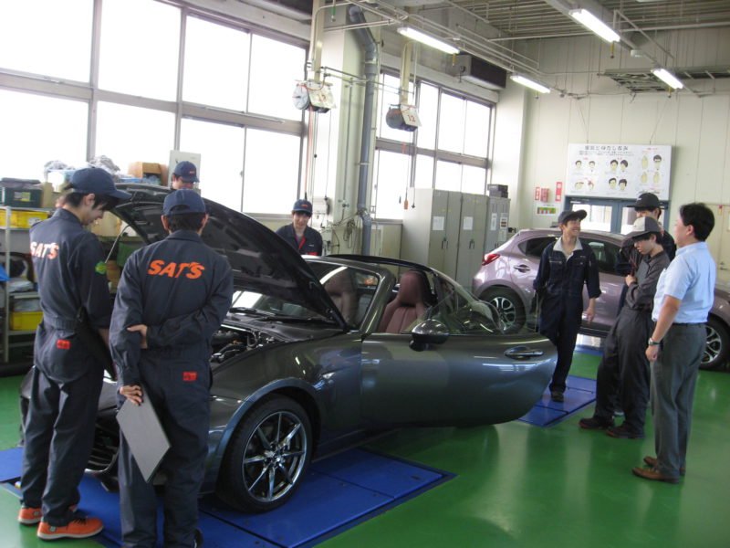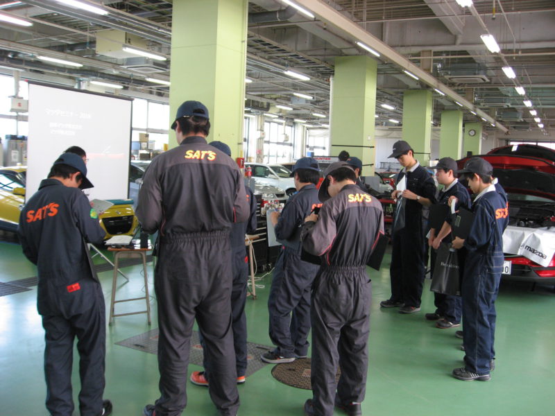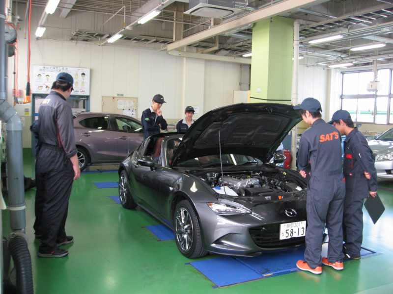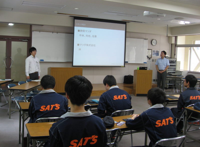 今回は”マツダセミナー”と題してマツダ株式会社、静岡マツダ様が講師となり技術解説、診断機を使用しての故障診断などを学生対象に実施していただきました。