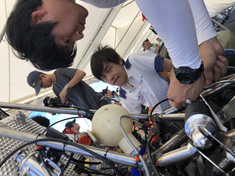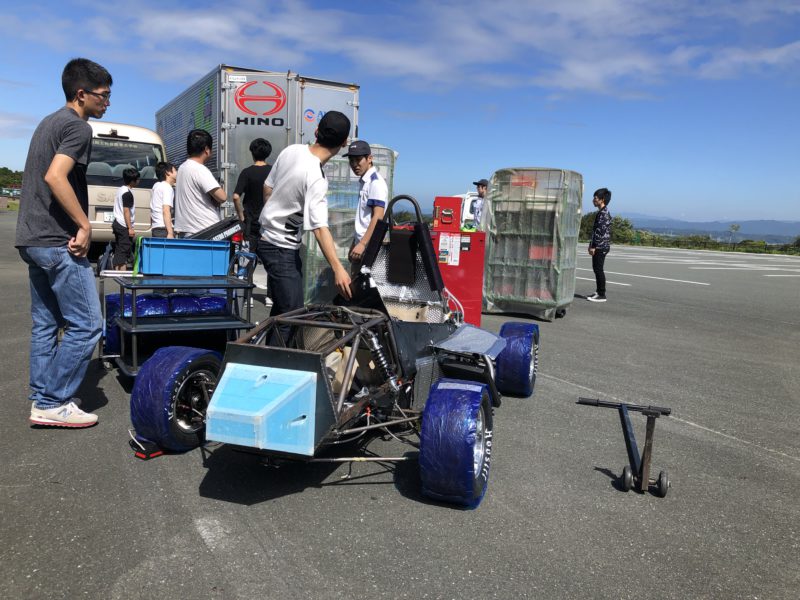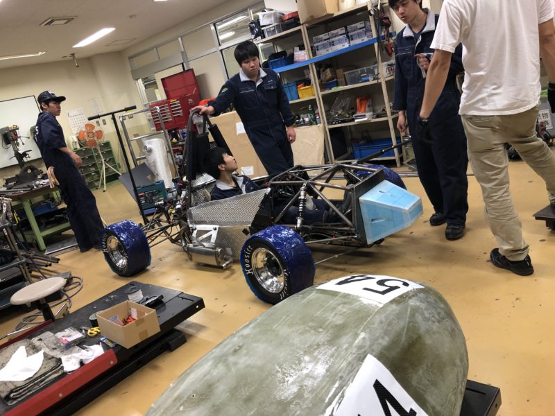 5日~7日の3日間、学生フォーミュラの試走会が予定されており、本校のハイエンジニア研究科の学生及びクラブ員がそれに向け準備をしていました。ところが初日の車検をクリアすることが出来ず、残念ながら残りの2日も走ることが出来ませんでした。現在は今週末の試走、今月末の大会本番に向け、心機一転頑張ってます。(yagawa)