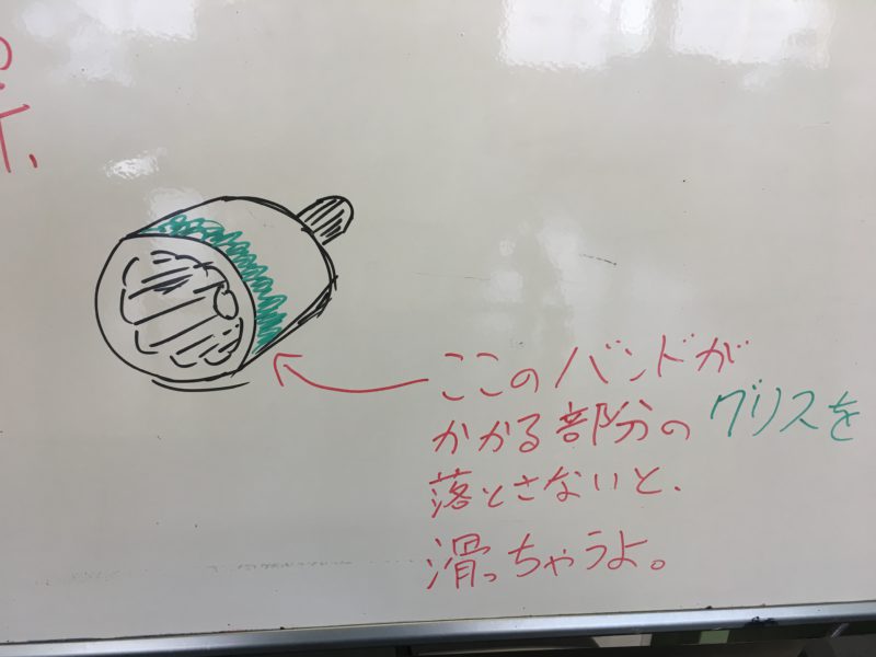 実習場で学生に説明するのにホワイトボードに絵を描いて説明する職員も少なくありません。今日実習場で見つけた絵を紹介します。1枚目と2枚目は鈴木先生、3枚目は川口先生。写実的でわかりやすいです。4枚目は廣石先生。写実的に書いたらピカイチですが、わかっているからこそ不要な部分を省略して、的確な説明図になってます。(yagawa)