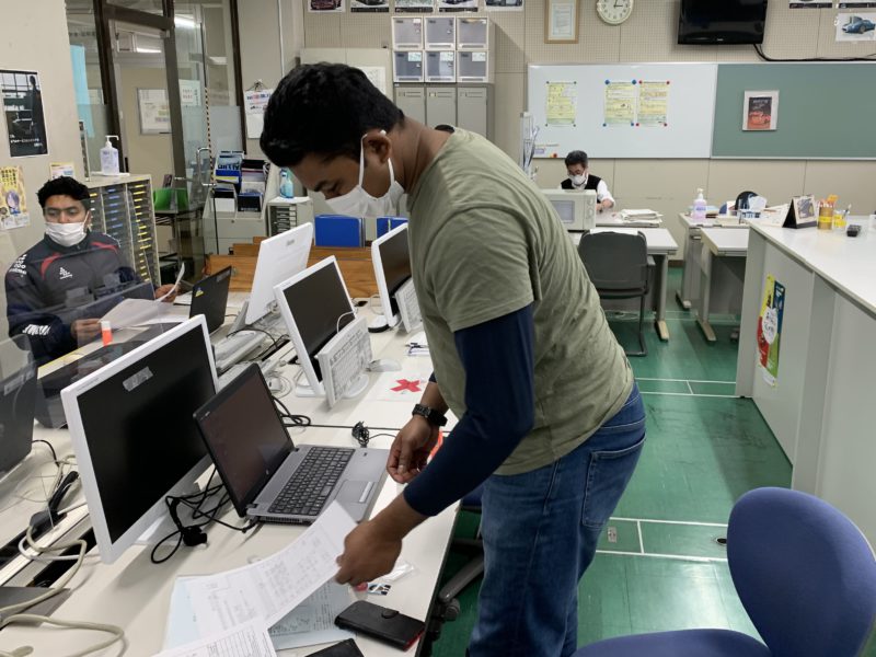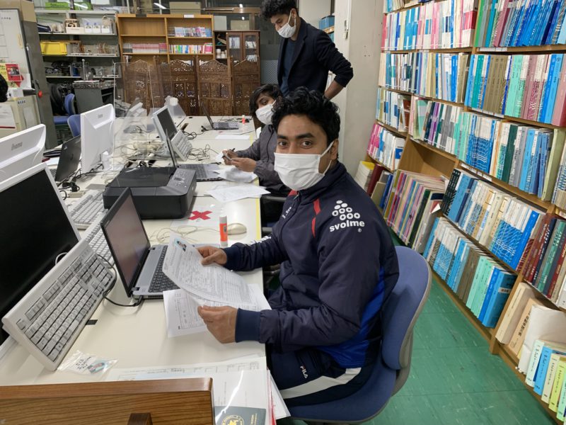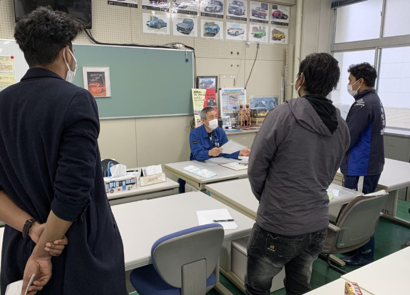 国際オートメカニック科の3年生は、ほとんどの学生が日本の企業への就職が決まっており、メカニックとして働きます。今は就学ビザを取得して日本で勉強していますが、今後は就労ビザに切り替える必要があります。学生たちは日替わりで手続きに必要な書類の作成をするために学校に登校してきます。(yagawa)