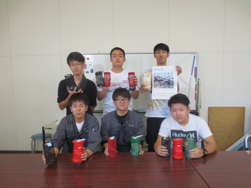 平成30年7月豪雨災害で被害を受けた方々を少しでも支援したいと、本校自治会の会長(システム工学科2年鈴木琢海くん)を中心に募金活動が行われました。各クラスから集められたお金は自治会本部役員で集計され、静岡新聞文化福祉事業団支援金係に届けられました。