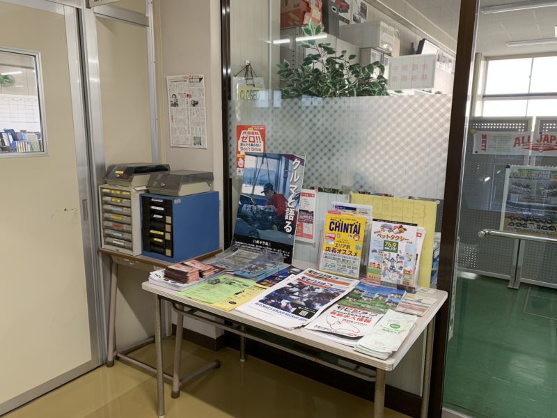 新入生の皆さん!この間、入学前に職員室の様子をちょっぴりお見せしたので、今日は別の施設を紹介します。今回は広報・学生課です。学科棟の階段を3階にあがると職員室の横に広報・学生課があります。在校生に向けての業務は奨学金事務や各種証明書の発行を行う課です。入り口には証明書などの発券機が設置されていたり、アルバイトの情報他の各情報が得られるポスターやチラシが置かれています。(yagawa)