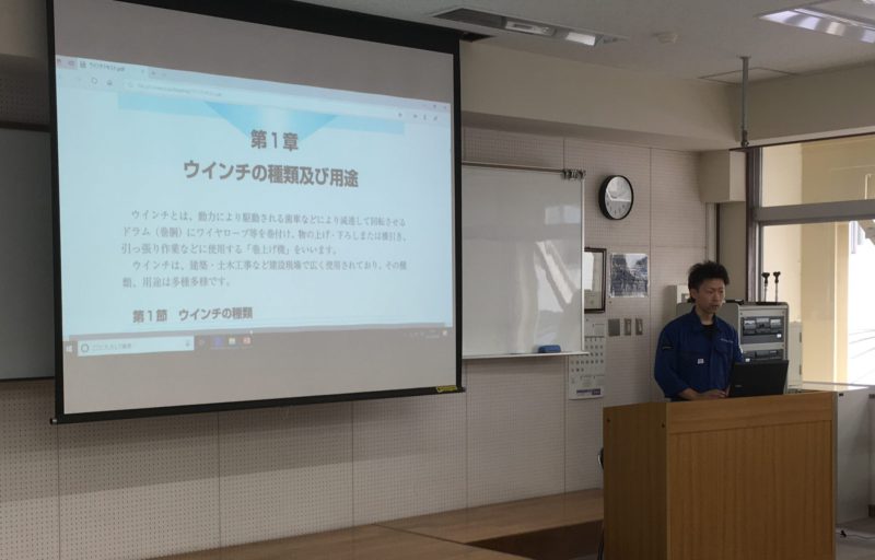 本日は学内で教員対象の「巻き上げ機の運転の業務特別教育」です。